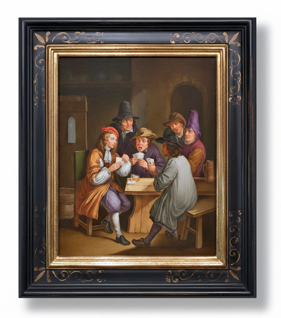 or fin légèrement usé sur assiette noire dos ocre
