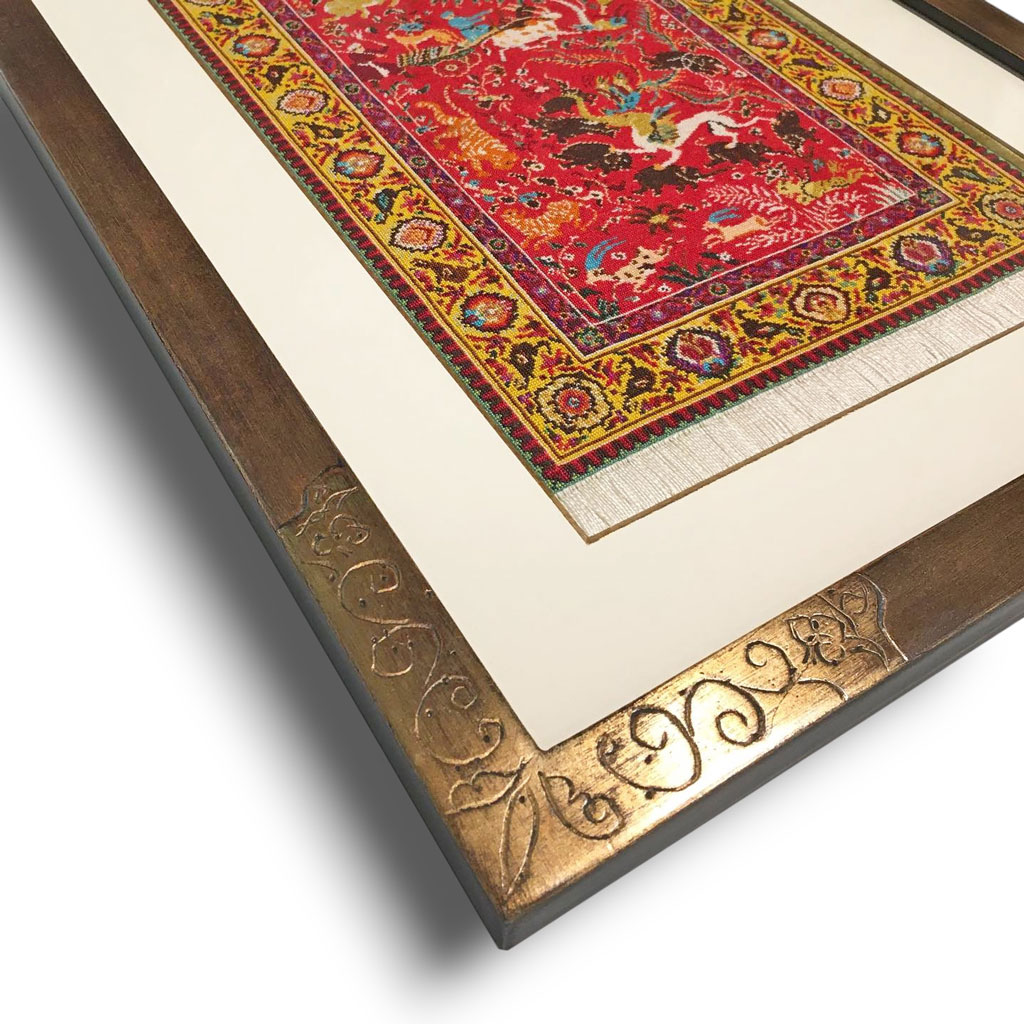 Cartouches et angles or fin rouge chine